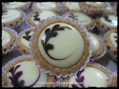 Yang ini chocolate cheese tart. Fillingnya cokelat seketul. Lepas tu panaskan sekejap kat dalam oven...nak bagi cokelat tu cair sikit. Sejukkan sekejap sebelum dituang dengan adunan cream cheese.
