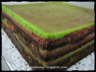 Ini cerita hari Isnin minggu lepas. Dah seminggu berlalu, baru nak kemaskinikan al-kisahnya. Minggu sebelum tu, ada order kek lapis chocoberry ni daripada Ima (Mawar Merah). Sepatutnya saya pergi ambil di rumah Ima tapi sebab Ima memang nak pergi jalan2, dia hantar kek tersebut ke rumah. Alhamdulillah...sebab masa tu saya tengah menyiapkan tempahan jugak.